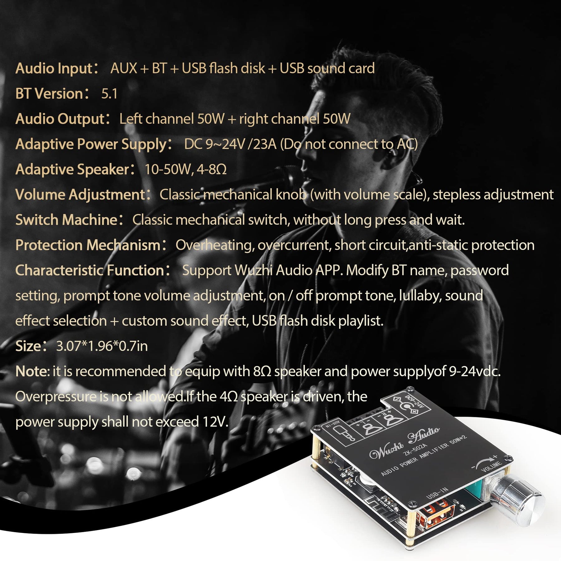- Original Amplifiers – ZK-502A Bluetooth 5.0 Amplifier Board 50W*50W with A 12V2A DC Power Supply,100W Bluetooth Audio AMP Board for DIY Bluetooth Speaker Kit DC9-24V,Black by UWAYKEY