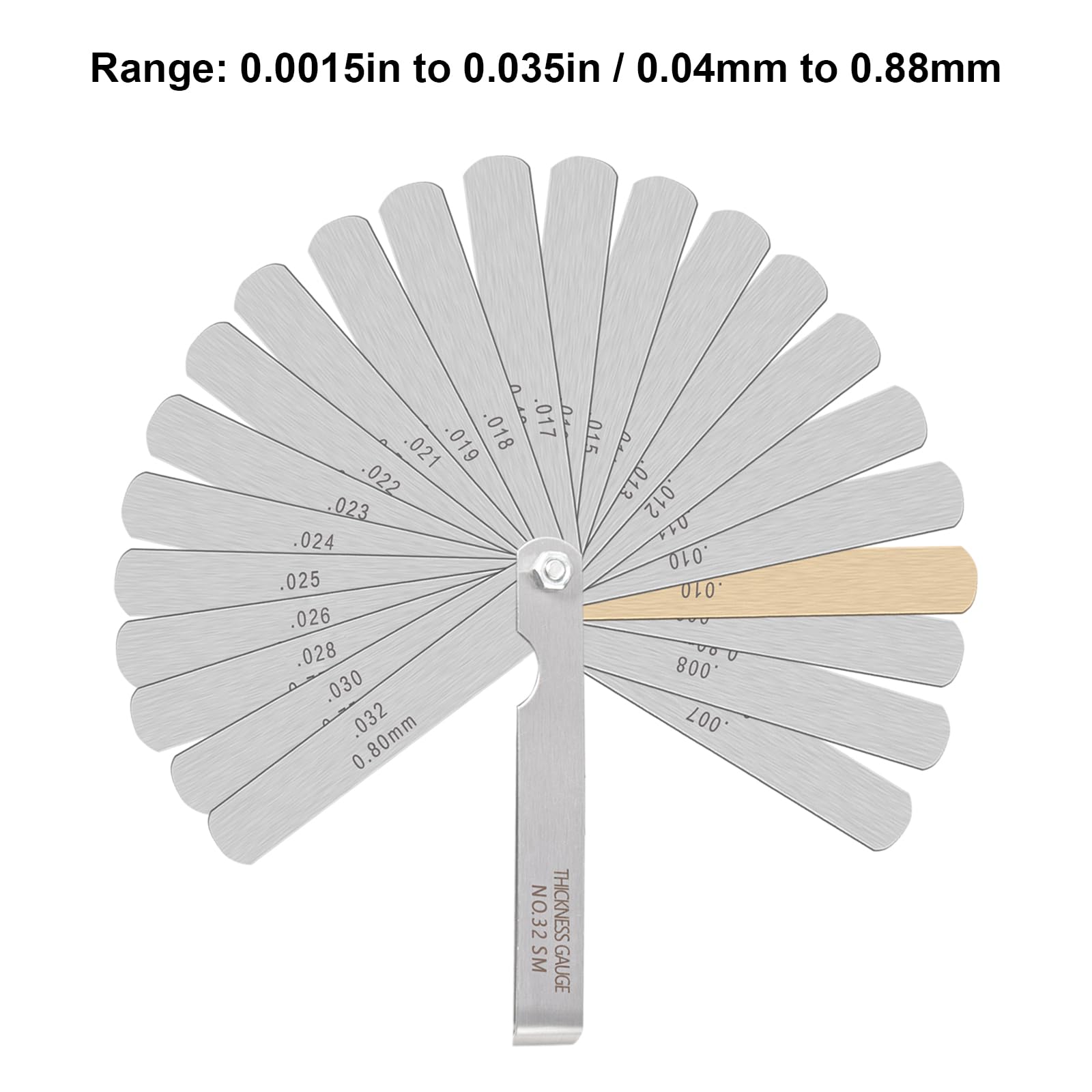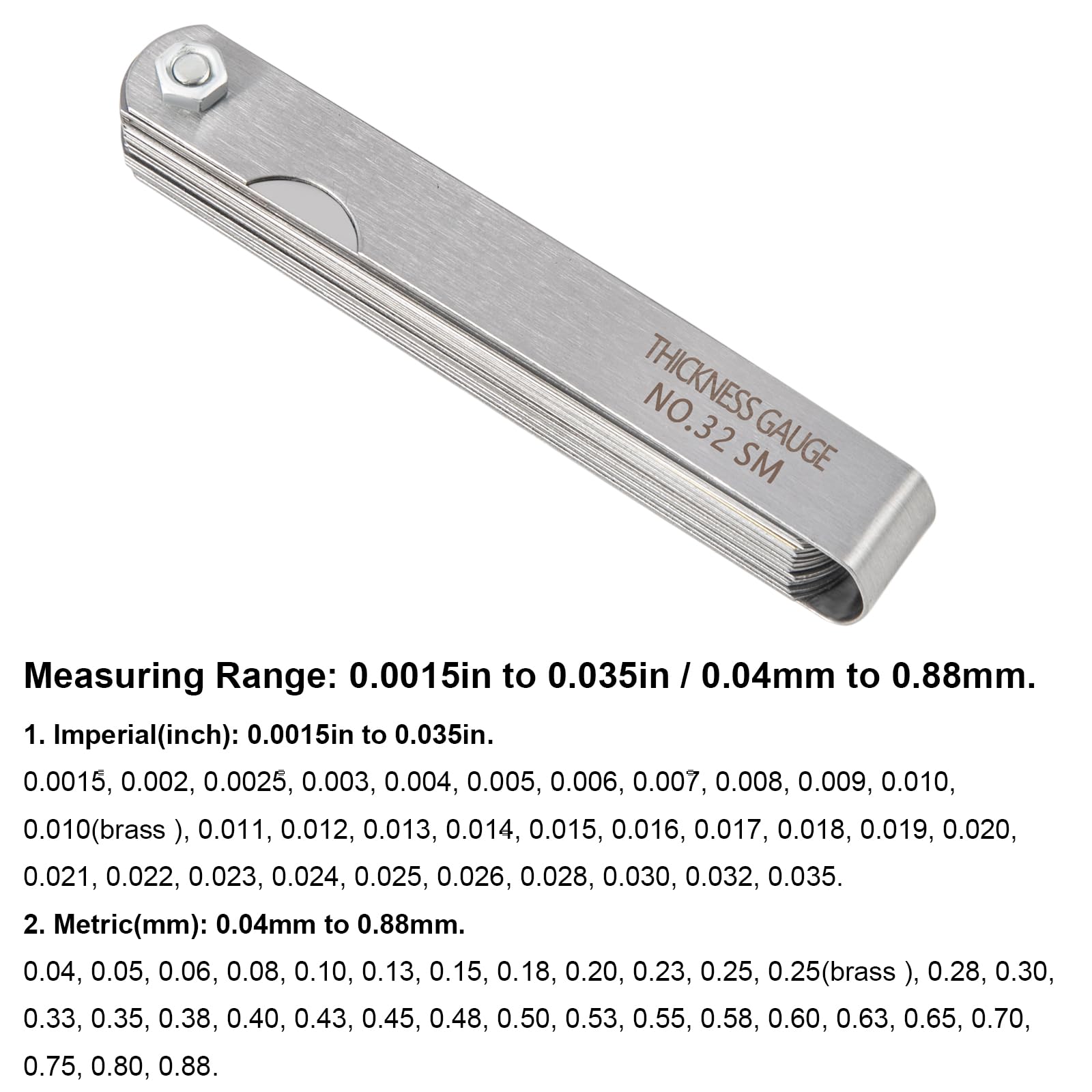 - Original Feeler – 32 Blade Steel Feeler Gauge (0.0015Inch to 0.035Inch), Thickness Feeler Gage Gauge, Gap Measuring Tool with Metric & Imperial, Great for Checking Valves & Building Engines by ZLKSKER