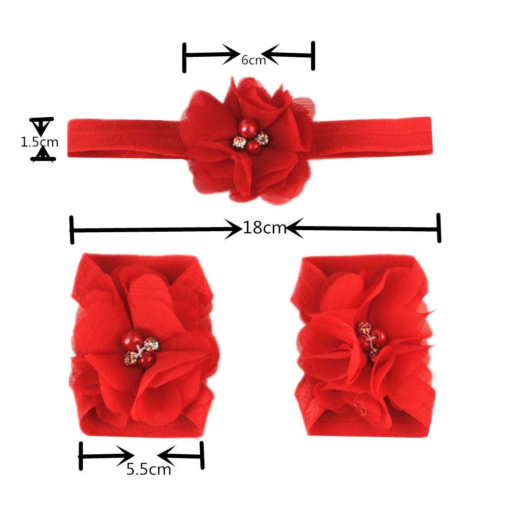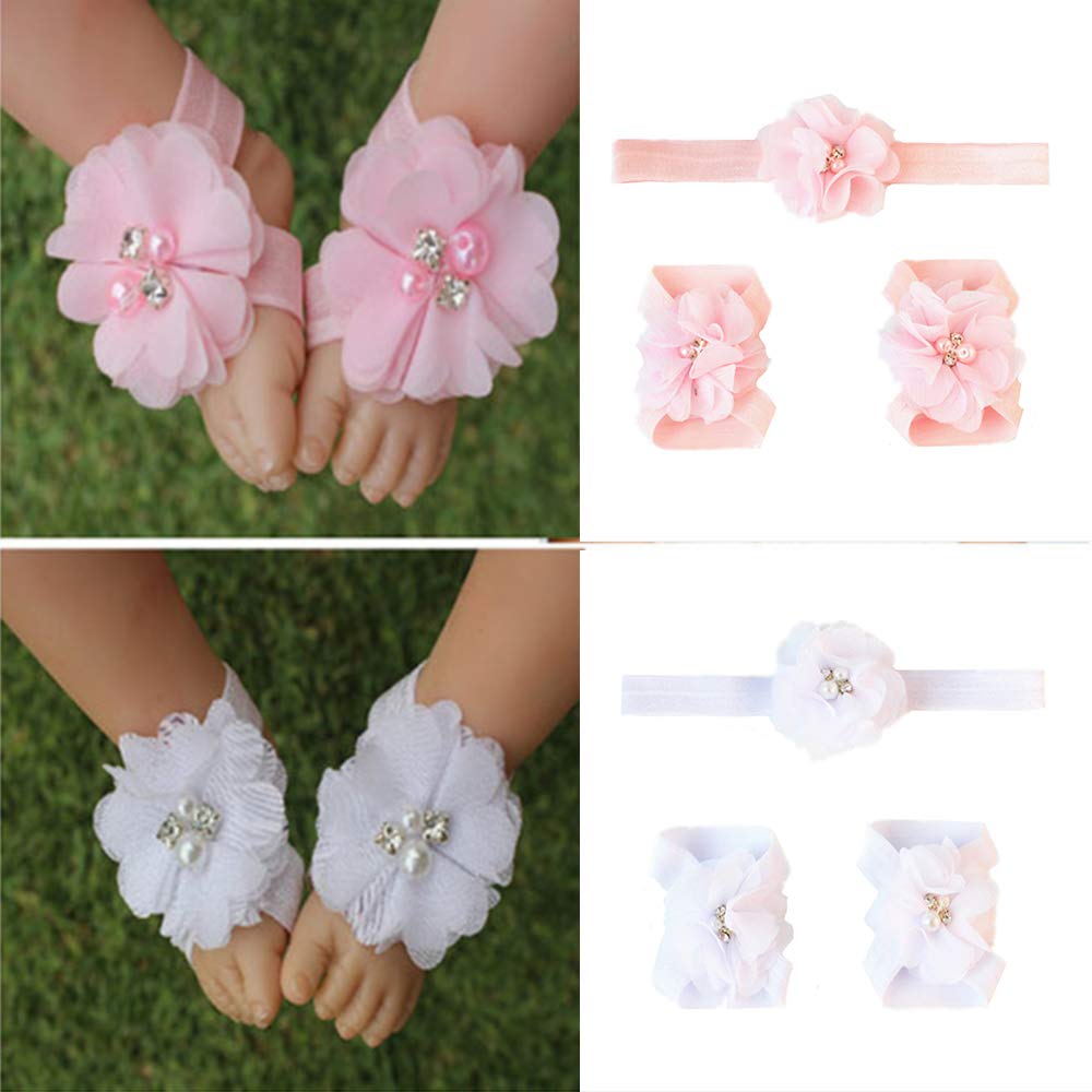 - [Chiffon Flower Deign]----Each headband and pair of barefoot sandals is adorned with a pretty chiffon flower, much more unique and exquisite.