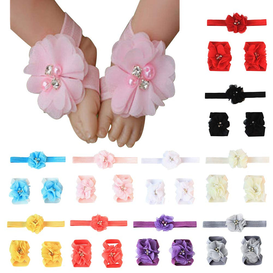 - Original Headbands – 10 Colors Baby Girl Headbands and Barefoot Flower Sandals Value Set Baby headbands Feet Accessories for Newborn Infants Toddlers Girls by ZOCONE
