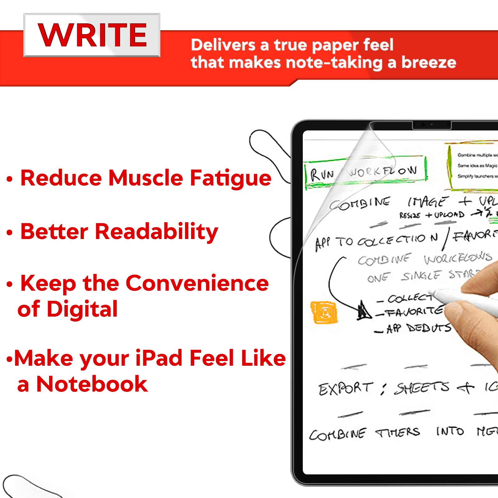 - Take notes with Ease:iPad pro 12.9 screen paper creates a feeling close to that of paper, restoring a true paper feel, making note-taking, writing, and drawing a breeze. and it has high touch response which minimizes pen slippage making drawing lines easier.