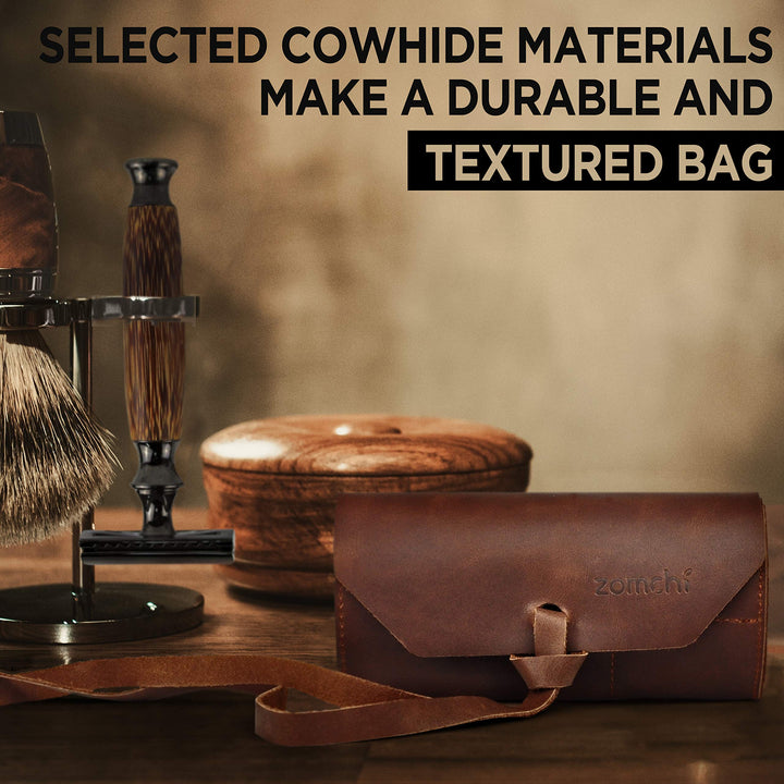 - Original Safety Razors – Genuine Leather Safety Razor Case, Razor Travel Shave Case with Pouches for Blades, Shaving Kit (Brown) by ZOMCHI