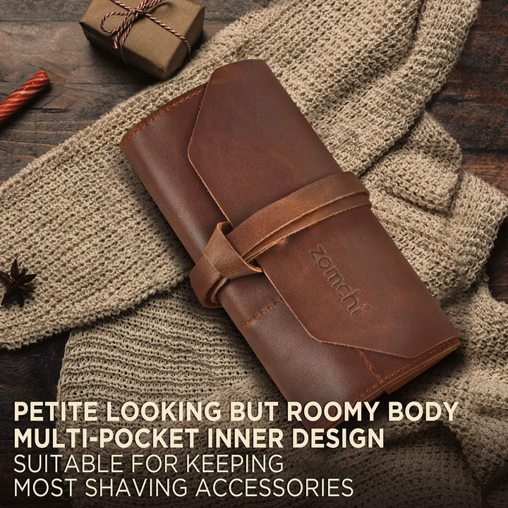 - Travel In Style: Our hand-stitched razor travel case comes with a band that you can tie it easily. Besides, this small size of safety razor travel case is easily put in your luggage and you'll be sure to keep your shaving essentials where you can find them