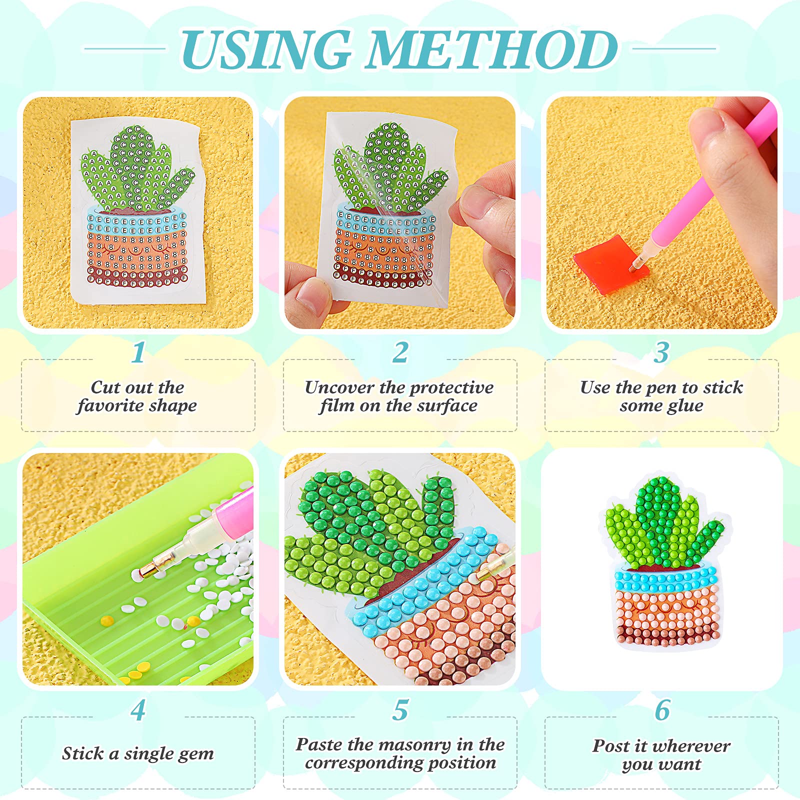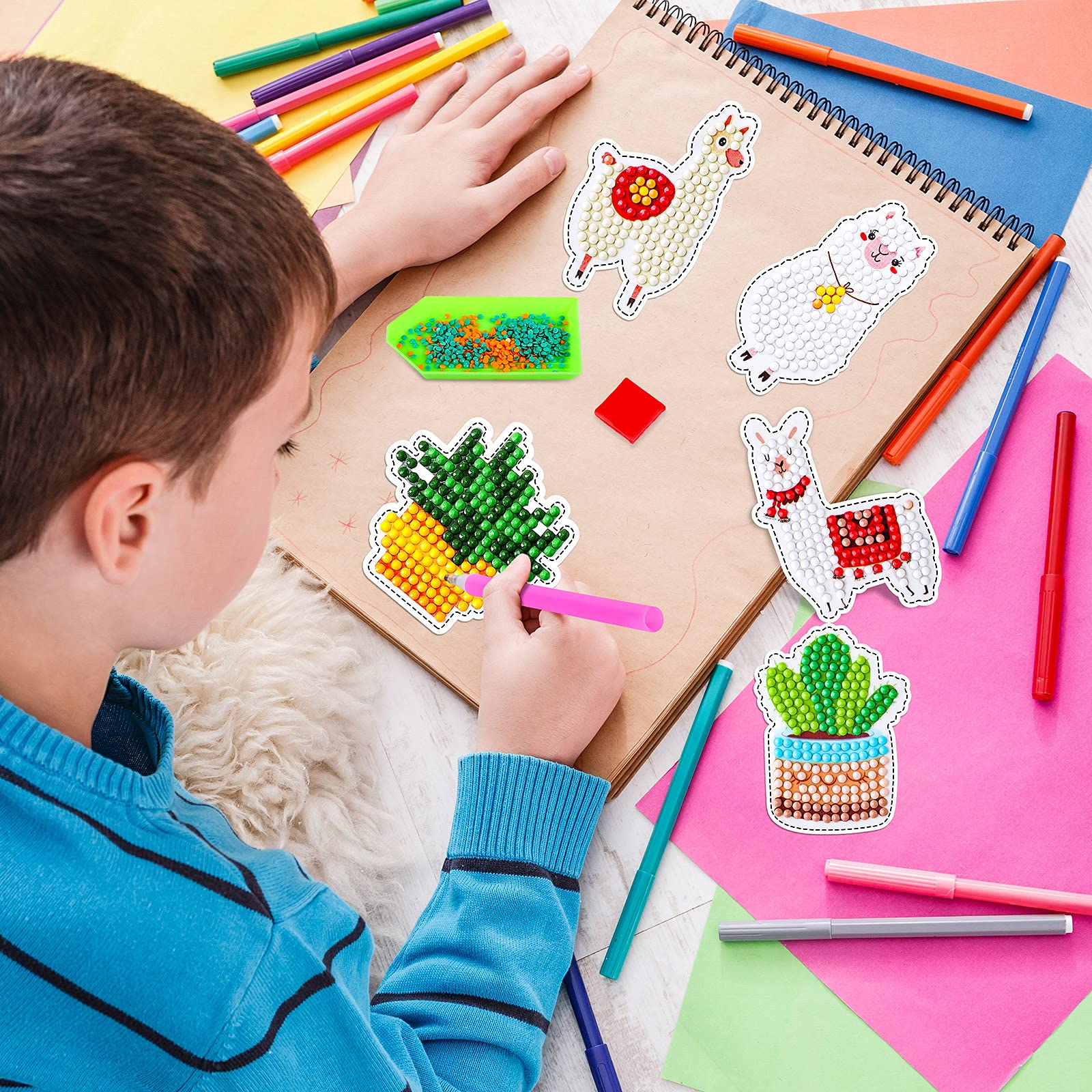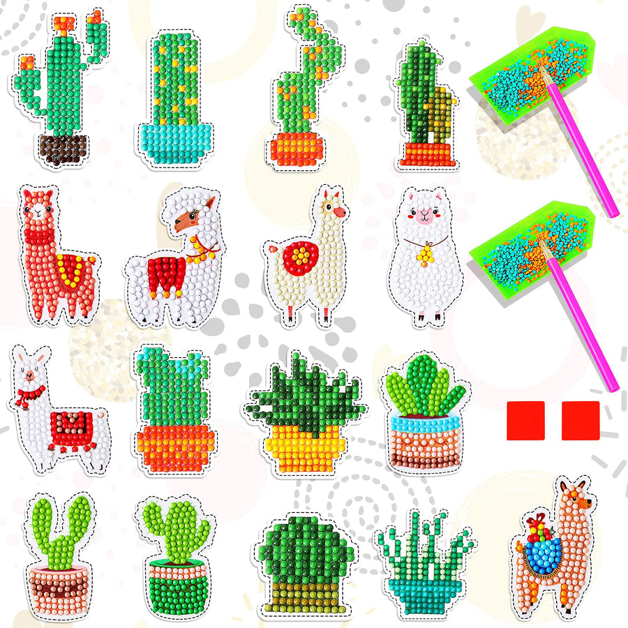 - Original Mosaics – 17 Pieces Llama Cactus Diamond Painting Stickers Kids 5D Gem Dots Painting Kits Diamond Art Decals DIY Mosaic Art Stickers Painting by Zonon