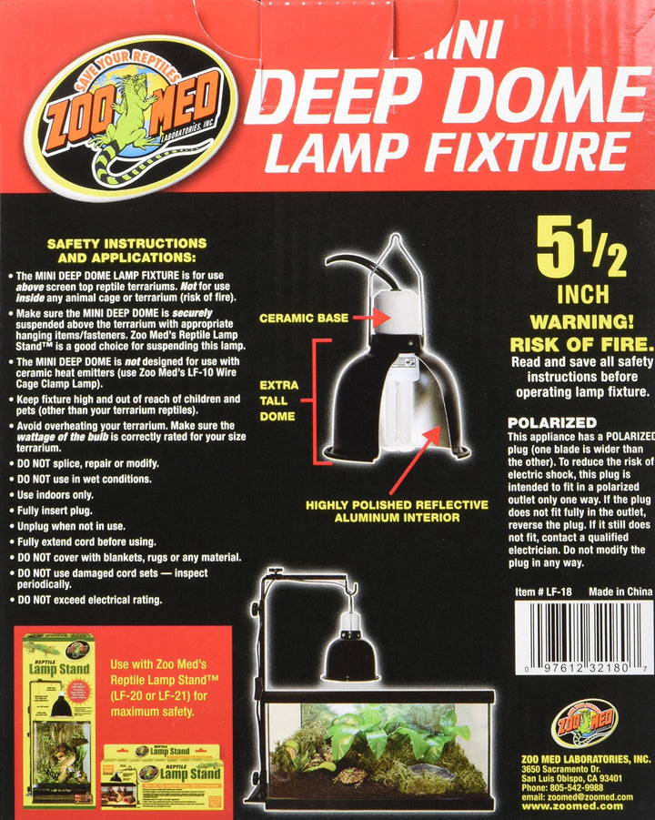 | included components | Zoo Med Mini Deep Dome Lamp Fixture with 5.5-Inch Dome, Black |