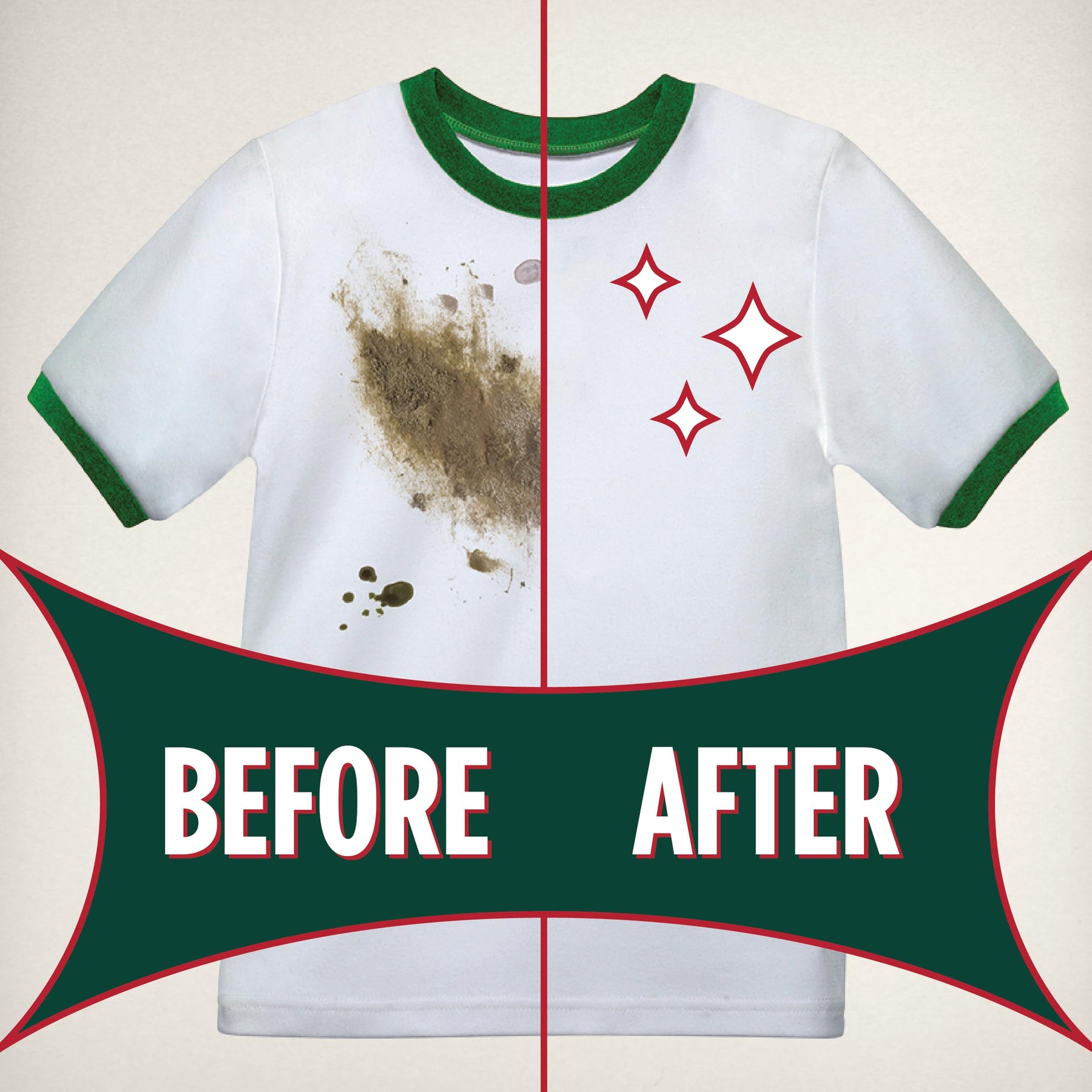 - Then wash your clothes as you normally would and say farewell to tough stains for good