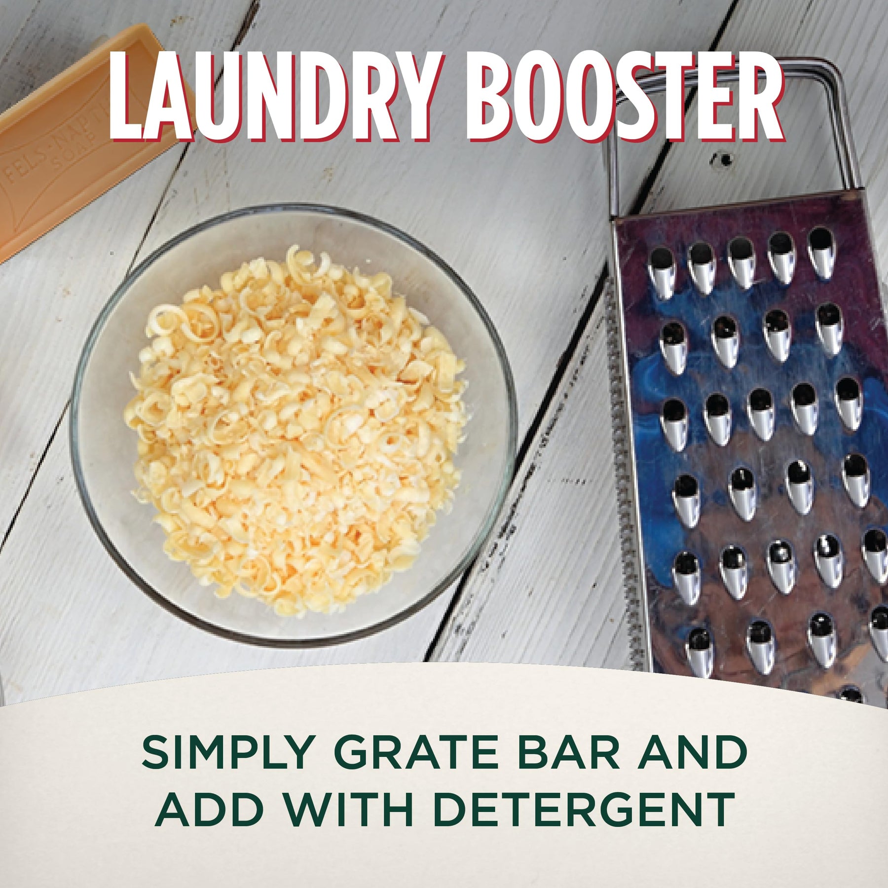 - For a stain boost to a wash load, finely grate half of the bar (use less for smaller or less soiled loads) into the washer, fill washer with water, and agitate for several minutes before adding clothing