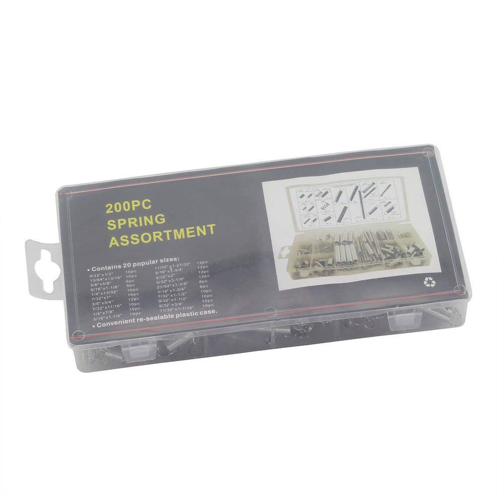 - Type: Spring assorted kit includes extension springs and compression springs in 20 different sizes, 200 pieces in total.