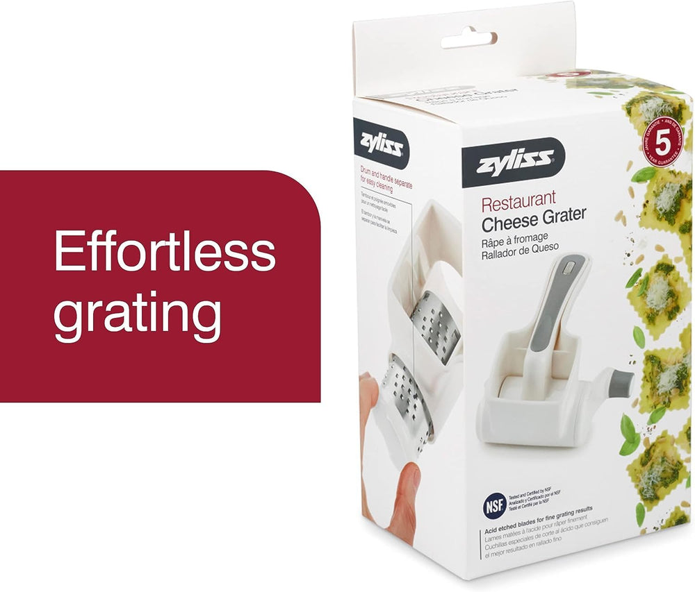 - Original Graters – Restaurant Cheese Grater - Handheld Rotary Cheese Grater - Cheese, Vegetable, Nut Grater - Steel Kitchen Cheese Shredder for Right- & Left-Handed Cooks - NSF Restaurant Certified - White by Zyliss