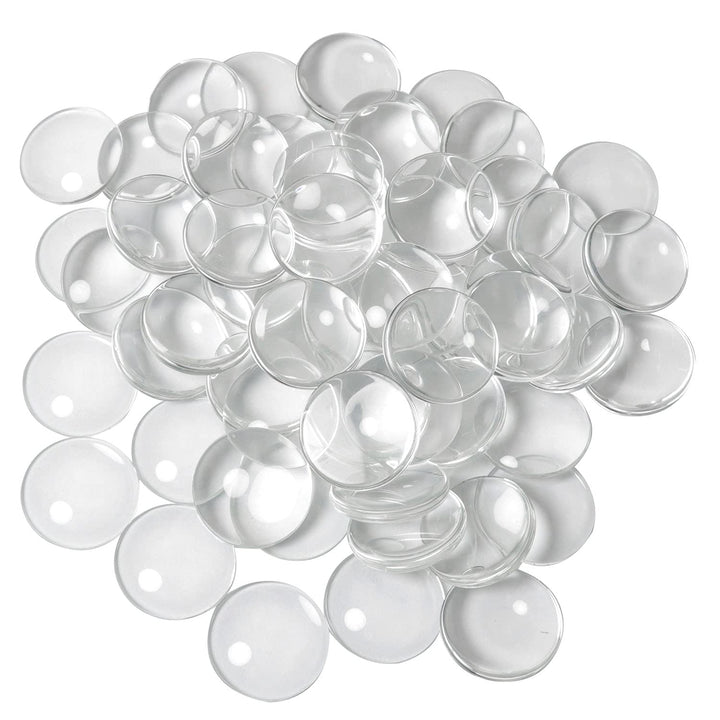 The uncalibrated round and flat back design has a magnifying effect when placed on top of an image or text.