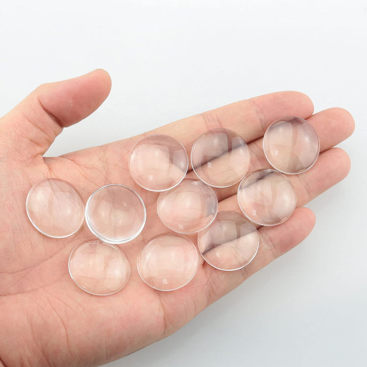 - With a non-calibrated round and flat back design, these transparent glass dome cabochons have a slight magnification effect and are easy to match with your earrings, cufflinks, rings or other items to create a dazzling and charming style.