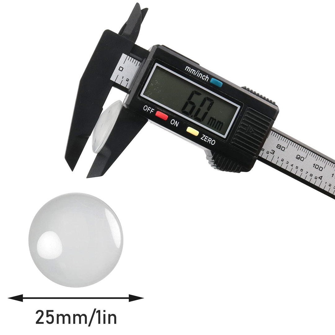 - Each round transparent cabochon transparent glass has a diameter of about 1 inch/25 mm, a thickness of 6 mm, and a weight of about 0.7 grams. Please check the size before buying.